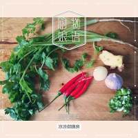 鲫鱼清理干净之后,用料酒,盐腌制20分钟。葱、香菜秆儿切成段儿,姜切片放进鱼肚子。