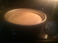 60分钟,面糊回落,上色。烤好。轻震出热气。