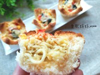 Tip:1,具体温度和时间依个人烤箱脾气! 2,趁热食用口感更佳,未食用完的可密封保存,防止土司风干后影响口感! 3,里面的食材可根据个人口味随意调整! 4,多放点芝士好吃!