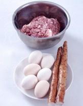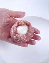 将去皮的熟鸡蛋分别包入肉馅中