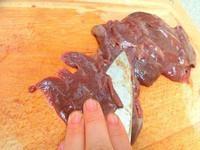 猪肝切成薄片,如果买来的猪肝偏薄,斜着下刀用片的技法猪肝会更加大片一些。