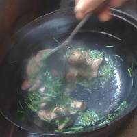 翻炒, 用铲子铲开猪肝看没血丝 即可加盐出锅