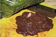 将猪肝洗净滤去血水后切片