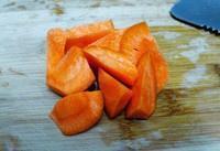鸭肉炒出香味后加胡萝卜翻炒,再加适量白糖、生抽