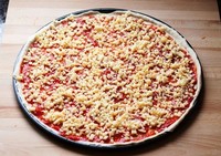 面粉和好以后发酵至本身的1倍大,继续再揉2-3分钟以后铺平,一次放上材料,烤箱预热至250度烤15分钟即可!