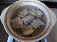 砂锅中放入清水和猪蹄,水量大约是猪蹄的两倍;