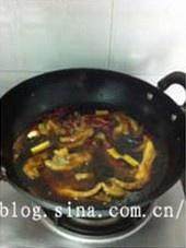 净锅内放油,下入八角桂皮花椒香叶及鸭掌