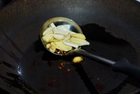 油热七八成熟转小火放姜、蒜、花椒煸香。