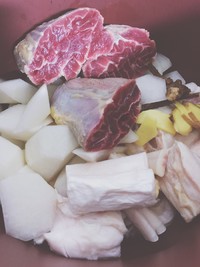 Tip:因为牛筋需要较长时间炖制,所有食材放的循序一定要注意哦,这样炖出来汤好喝,不然一锅炖其他食材会变很烂,没什么嚼劲(不适合小未这样牙口好的菇凉,哈哈哈哈)