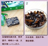 黑木耳用冷水泡发,漂洗干净摘去老根