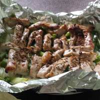 里脊肉放置10分钟左右,洋葱切丝,葱切段平铺在烤盘上,把腌制好的放在葱和洋葱上进烤箱【我用的是小烤箱】