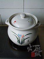 洗好的鸡块入砂锅,一次性添足热水,大火烧开