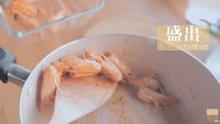 另起一口炒锅,倒入5ml橄榄油,倒入虾头,爆炒后将虾头盛出,留下虾油。(之前留着的虾头就是用来熬虾油的!熬出虾油的虾头就没有价值啦!可以和它说拜拜了!用虾油炒出来的菜会香很多!而且不浪费~)