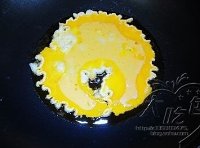 不等蛋液凝固膨胀就用铲子或者筷子快速的搅拌,成细丝状最好