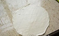 将面团擀开成为面饼。面团很软,不要擀太薄。刚开始从小做起,以免不好操作,擀开的时候台面可以抹油防粘
