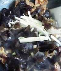 将木耳和剩余葱丝放入锅内一起翻炒,加适量盐翻炒至均匀即可