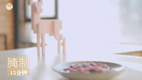 黑椒牛柳意面: 80g牛里脊切成条状。加入2g白糖、5ml料酒、5ml生抽,适量生粉和2g黑胡椒。腌制15分钟。