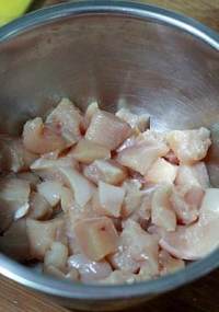 将鸡脯肉切成小块备用