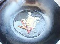 锅内放油烧热,放入蒜姜和干椒丝爆香