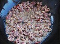 放入切好的鸡心翻炒至八分熟