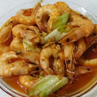 将底油加热,放入蒜末、两勺白糖、番茄酱、盐翻炒。待出香味放入大虾一起翻炒两三分钟