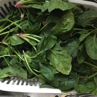 起油锅炒菠菜 加少许的盐 更能体味到新鲜菠菜甜甜的味道 加入之前炒好的内脏 加入少许水 收汁 撒葱 摆盘