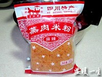 再放些自家做的四川豆瓣、孜然粉、花椒粉、辣椒粉,与蒸肉米粉、羊肉均匀混合。如果感觉太干可稍加一点水,但不可太多