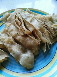 胡萝卜煮好以后,把饼擀开,一定要薄一定要薄一定要薄,重要的事情说3遍