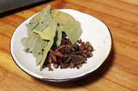 高压锅中放入香叶、八角和花椒粒,加入纯净水,放入腌过的羊排,压18分钟。