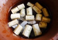 牛蒡洗净去皮,先泡在醋水里防止变色(醋水就是往水里加一点点白醋)