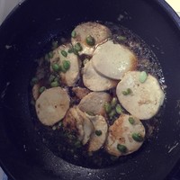 待素鸡表皮呈金黄色,放入老抽、生抽、冰糖,再加水,水的量差不多淹没素鸡,然后开大火。水开之后转中小火进行收汁。
