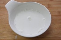 倒入蕃薯粉水晃动锅子使粉均匀的铺在锅子里