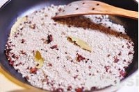 把粗盐、花椒、2片香叶和2个八角放在锅里炒3、5分钟,至盐粒发黄,花椒微微变黑,关火彻底冷却待用