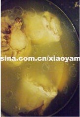 洗净后再加水和姜片,2勺料酒,小火炖煮