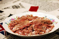 起油锅,油七成热倒入土豆片,待土豆片两面呈金黄色捞起。留少许油将羊肉片倒入翻炒之肉片成白色加入料酒,翻炒一分钟将炸好的土豆片倒入放少许水烧开,然后放入咖喱,关掉煤气,盖上锅盖焖会,待咖喱溶解后再开大火焖烧两分钟起锅。