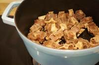 黄油完全融化后,放入牛尾煸炒出香味 (注意牛尾要沥干水分,否则油会飞溅)