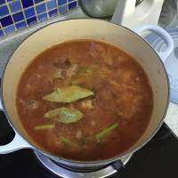 加入一勺番茄酱(不是番茄沙司),加入牛尾、加水