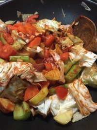 热炒锅 放少量植物油融化牛油 先放洋葱煸炒出香味再放胡萝卜番茄翻炒 然后把剩下的蔬菜一起倒入翻炒 最后放入茄膏炒匀(炒蔬菜时可放少量盐提味)