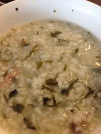 Tip:1、孩子有点感冒,我就没放蚝豉,不然放几个蚝豉也是很鲜香的。 蚝豉用温水和黄酒泡一下,然后锅内滴几滴油,加葱姜末在一起翻炒一下,使得蚝豉的香味出来,再一起放入电饭锅中同煮。 2、咸猪骨的咸味要自行把握,宁可多泡会水,如果最终出锅觉得淡了,加点点生抽也成。