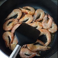 再放适量油烧热放姜片,番茄酱,白糖,生抽调味,倒入煎好的海虾,适量放入一点热水。焖1-2分钟即可。