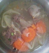 拿出冬瓜干浸泡(如果没有冬瓜干可以用菜干),待它变软放入汤中,保持小火