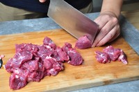 加入煮至酥烂的牛腩,并用少许油渍香葱和蒜片去腥