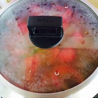 加入过滤水,一次添足。炖一个小时呢。最后还要剩下水。所以根据自己的锅保水情况添水。