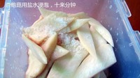 杏鲍菇用盐水浸泡十分钟,沥干水分