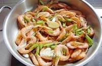 将海虾直接放入复合底的厚底锅中,只放1汤匙料酒,不用放水,只利用海虾本身的水分即可