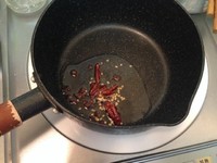 熱油,下花椒和幹辣椒,幹辣椒要掰開