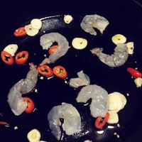 煸炒出香味以后加入鲜虾