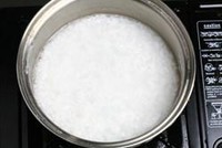 大白米粥加热,(本人非常喜欢米粥熬的浓稠之后的米的香味)