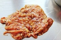 带上一次性手套反复揉搓鸡腿肉,使之入味,冰箱冷藏腌制1小时以上