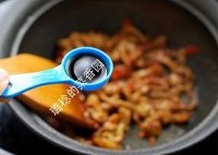 先用3勺水淀粉将肉丝抓匀,上浆。(水淀粉=1份淀粉+3份清水)上过浆的肉丝,能保持肉丝的水分,炒出来口感更滑嫩